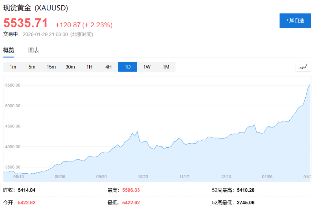 与此同时,黄金和白银周四分别突破每盎司5500美元和118美元的新高。